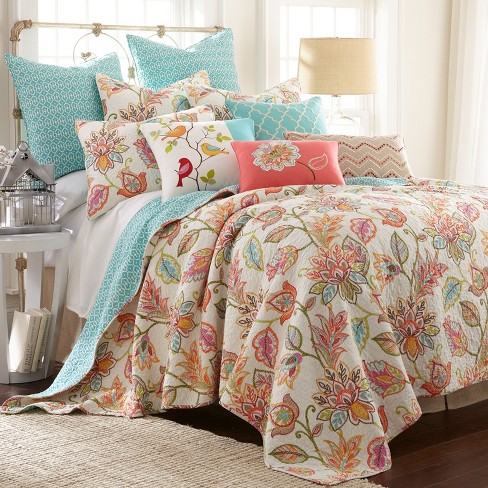 Zavaro Home Printed Jacobean Floral Leaf Lightweight Soft Microfibre Reversible Quilt Bedspread Coverlet Bed Cover Bedding With Shams 3pc Set Queen 86 X 86 Olive Green Blue Teal Natural White Buy Online from images-na.ssl-images-amazon.com Whether you coordinate this dynamic printed design with your warm autumn décor or reverse this quilt to its versatile neutral pattern for an everyday look, you'll be surrounded in modern style. Fashion, home & garden, electronics, motors, collectibles & arts Target.com has been visited by 1m+ users in the past month 5 out of 5 stars. The reverse has a farmhouse style stripe print which is ideal for layering with solids or other prints. We have almost everything on ebay. Get it as soon as fri, jul 9. Kaufman bella mariposa flowers and paisley metallic ivory.